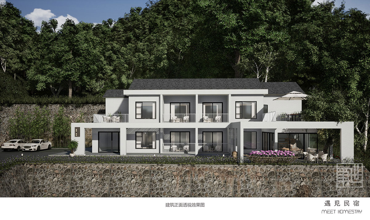 本案采用簡潔純粹,返璞歸真的設計理念,最大限度保留原有磚結構建筑,主體建筑加大了原有房間的窗戶采光,做成了落地窗,讓外部環境一覽無余,呈現出天人合一般的仙境感覺。讓人逃避城市的喧囂,讓自我的心身徹底回歸自然。