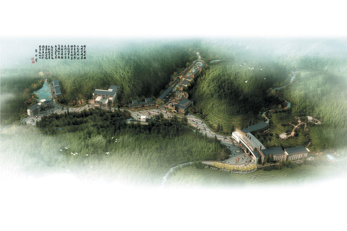 沁園總面積約11000平方米,主要由入口大堂,接待大廳及多種客房組成。業(yè)主定位為以茶文化主題的休閑建筑。在調(diào)研了本地相關(guān)文化資源后決定深化茶文化主題。建議依山勢曾建一處茶樓,定位為經(jīng)營與展示及體驗區(qū),以原木為材料傳統(tǒng)建筑手法構(gòu)造,以此充分發(fā)掘茶文化的市場潛力,提升本園的文化品位及特色。在客房層更深化設(shè)計主題,一軟裝等多種裝飾手法體現(xiàn)“綠茶、紅茶、花茶”等多姿多彩的茶文化內(nèi)涵。是客人在入住的同時切身感受,深入體驗,對酒店是特色文化印象深刻。